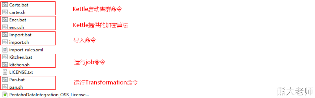 | Kitchen | 【厨房】Job执行器(命令行方式),Kitchen用于在终端执行Job,没有图形界面。 |