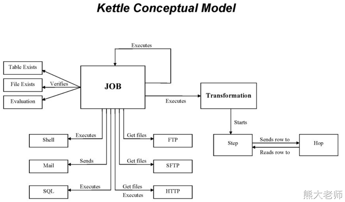 kettle是一个ETL工具,允许管理来自不同异构数据源的数据,并在基于图形化的工具中,完成对ETL的操作。