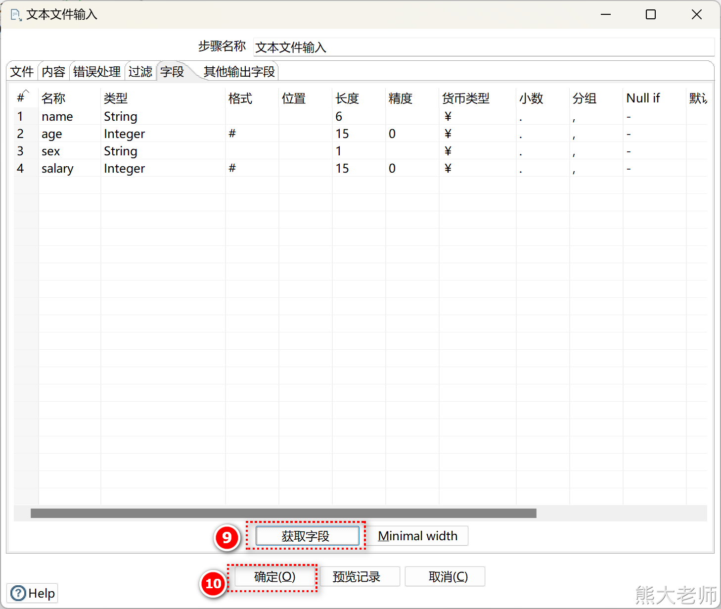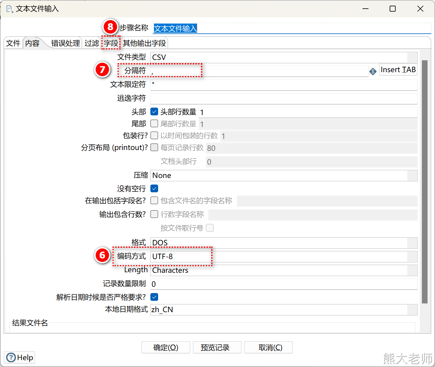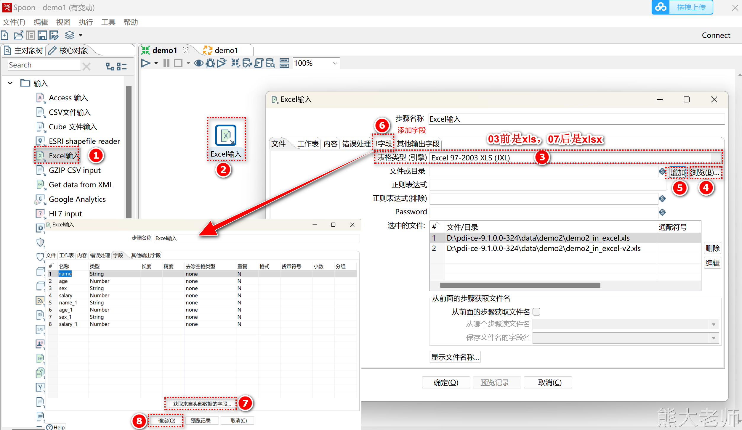 注意:在抽取hdfs文件的时候,如果点击【获取字段】出现报错,需要变更文件的格式,具体如下: