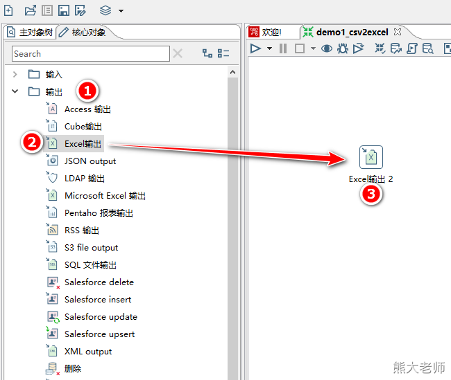1)通过拖拽的方式将Excel输出放入编辑页面中