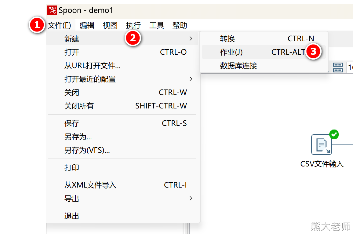 每个“Transformation-转换”对应的保存文件名称为“xx.ktr”