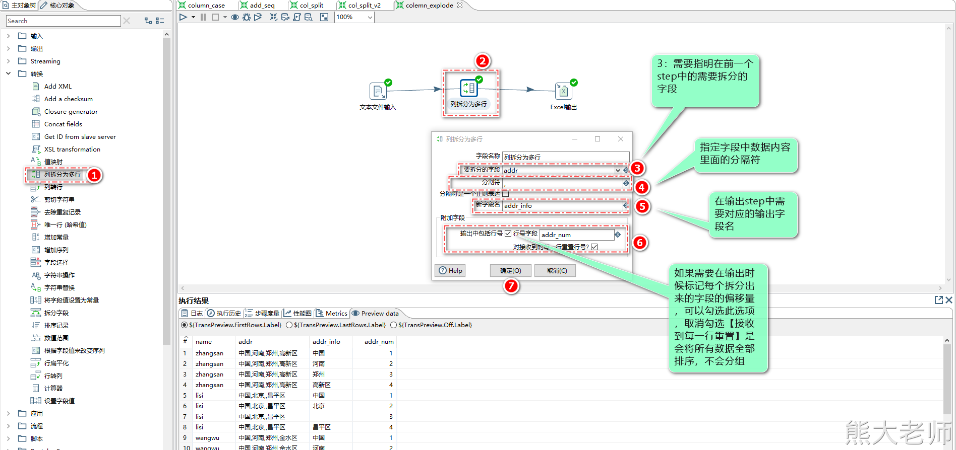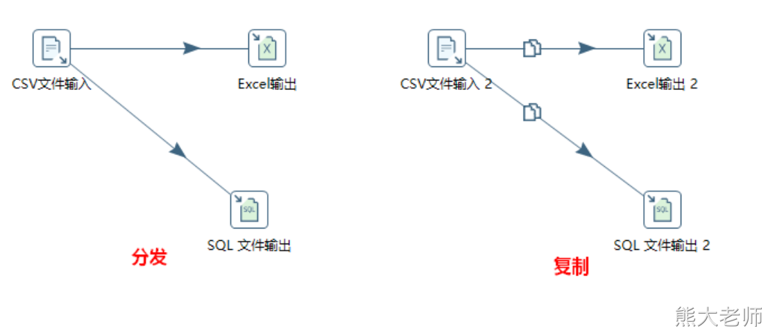每个Step都有唯一的一个名字,一个Step可以有多个输出跳,一个“步骤”的数据有多个输出跳时可以设置数据“分发”或者“复制”,“分发”是目标“步骤”轮流接收数据,“复制”是所有的记录被同时发送到所有的目标“步骤”。@