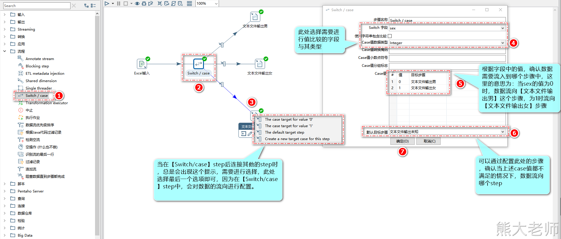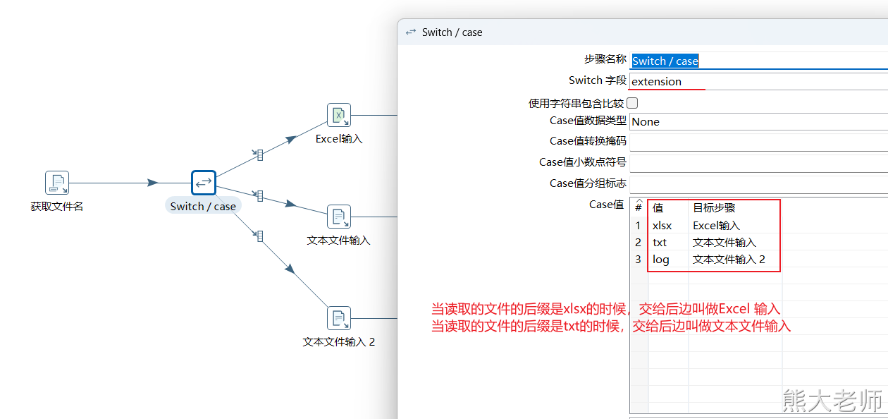 “Switch/case”类似Java中的Switch...case...操作,可以根据匹配不同的值做不同的操作,可以让数据流由一路到多路