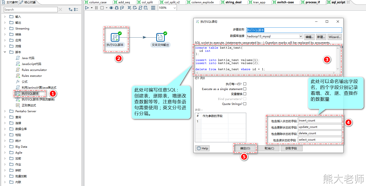 “执行SQL脚本”可以执行自己定义的SQL语句,例如执行一个update语句,用来更新某个表中的数据。