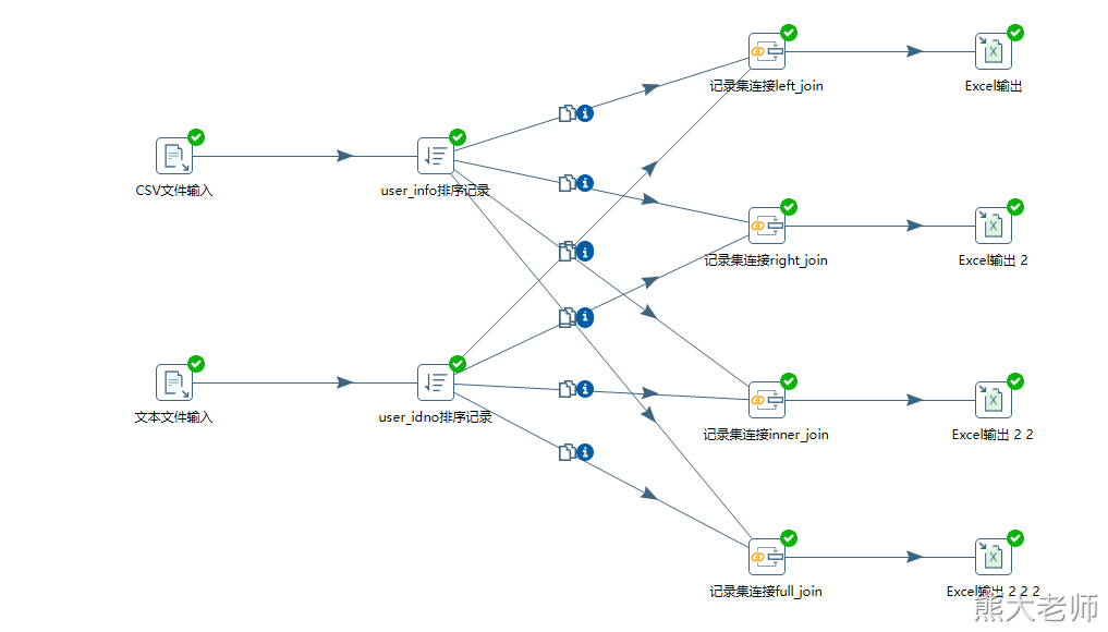 当“Transformation-转换”启动后,所有“Step-步骤”都同时启动,这些“Step-步骤”都是并发方式运行,各自从对应的输入跳中读取数据,并把处理过的数据写到输出跳,直到输入跳里不再有数据,就终止步骤的运行,当所有的步骤都终止了,整个转换就停止了。