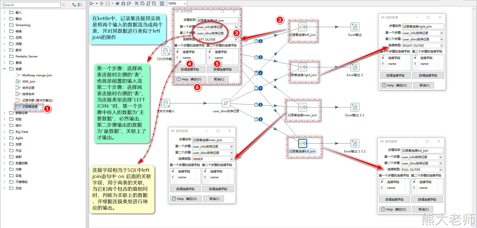 “记录集连接”可以做类似数据库中左连接、右连接、内连接、外连接操作。在对流数据进行连接之前,需要对记录集进行排序