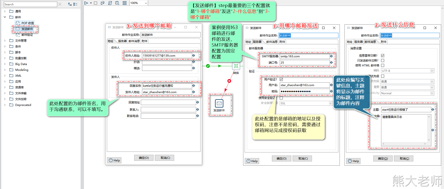 当作业或转换运行出现问题或者运行成功等运行状态出现,维护人员想要在第一时间获取到任务的运行情况,可以通过【邮件】-【发送邮件】这个step来完成通知。