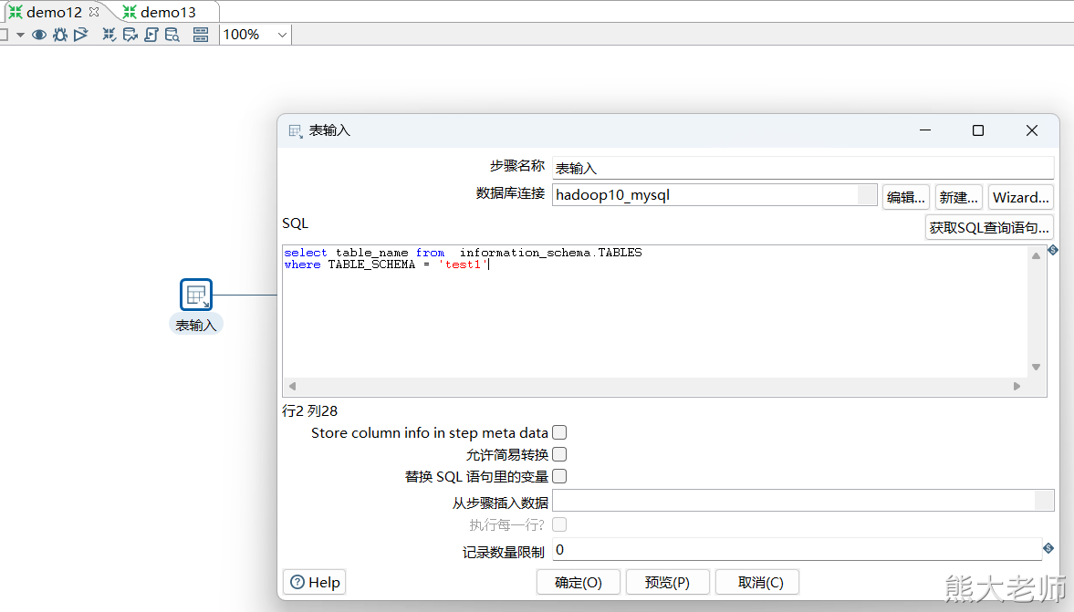 注意:在进行变量的设置与获取时,变量的名称应全程一致,不然在表输入中无法获取到变量的中的值。
