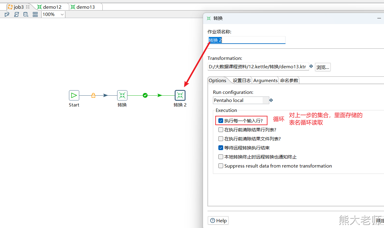 - 创建一个转换任务,不停的进行表名和文件的替换,然后重跑。(可以但不推荐)