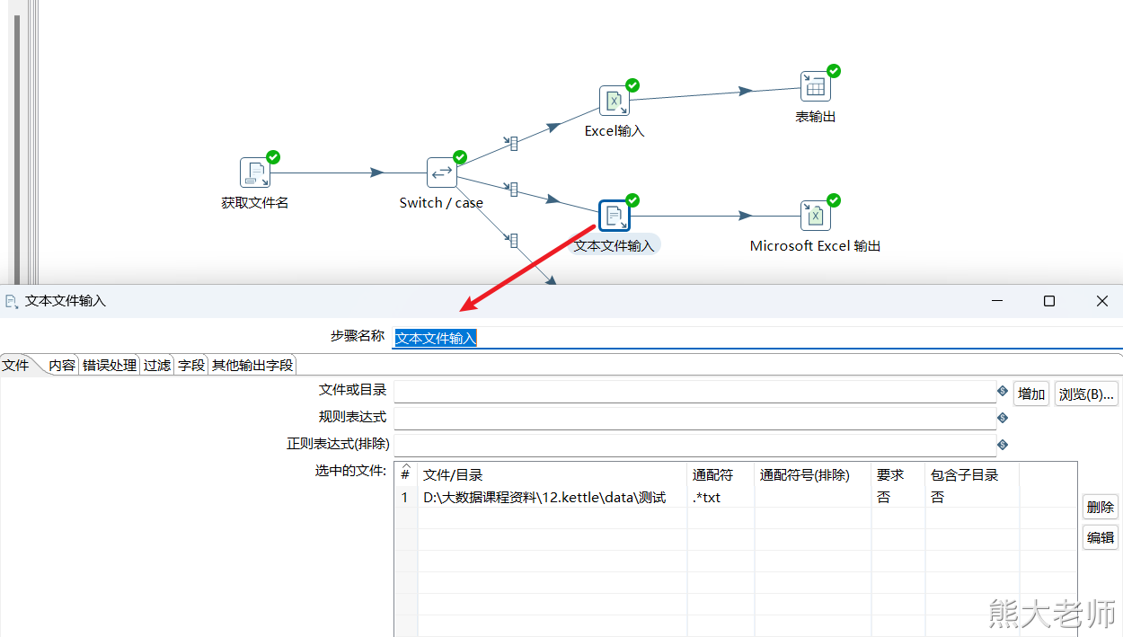 需求:在一个文件夹下有很多文件,且这些文件的后缀有多种,现在要求通过一个转换将文件中的数据分发不同的目的地