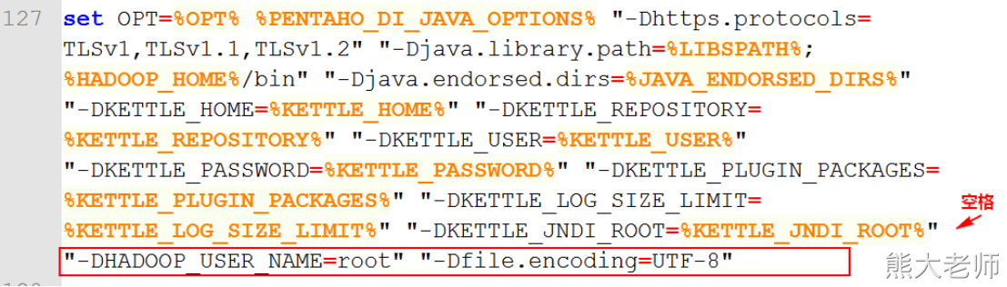 注意:如果在执行过程中出现编码问题可以修改“D:\pdi-ce-9.1.0.0-324\data-integration\Spoon.bat”文件第127行,添加以下内容,指定编码为UTF-8(注意添加时,有空格),添加后重启Kettle