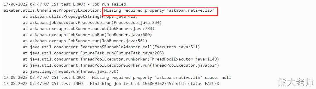1. azkaban的job流文件,后缀是.job 1) type属性 必须赋值 值有:command,java,pig 2. azkaban执行的job必须要提前打包,打包的格式必须是zip格式 不能打包文件夹,打包文件 3. 流文件里的书写格式: 1)一定要注意行末不要有空格 2)编码集的问题,如果在window上实在不行,可以上传到linux进行zip压缩,然后下载到windows上,再上传到azkaban上