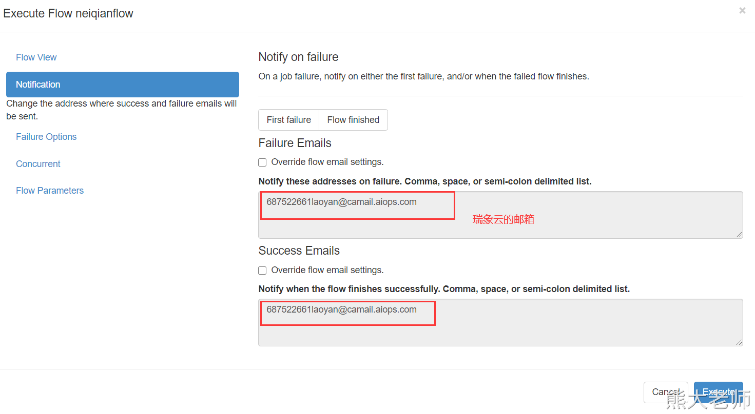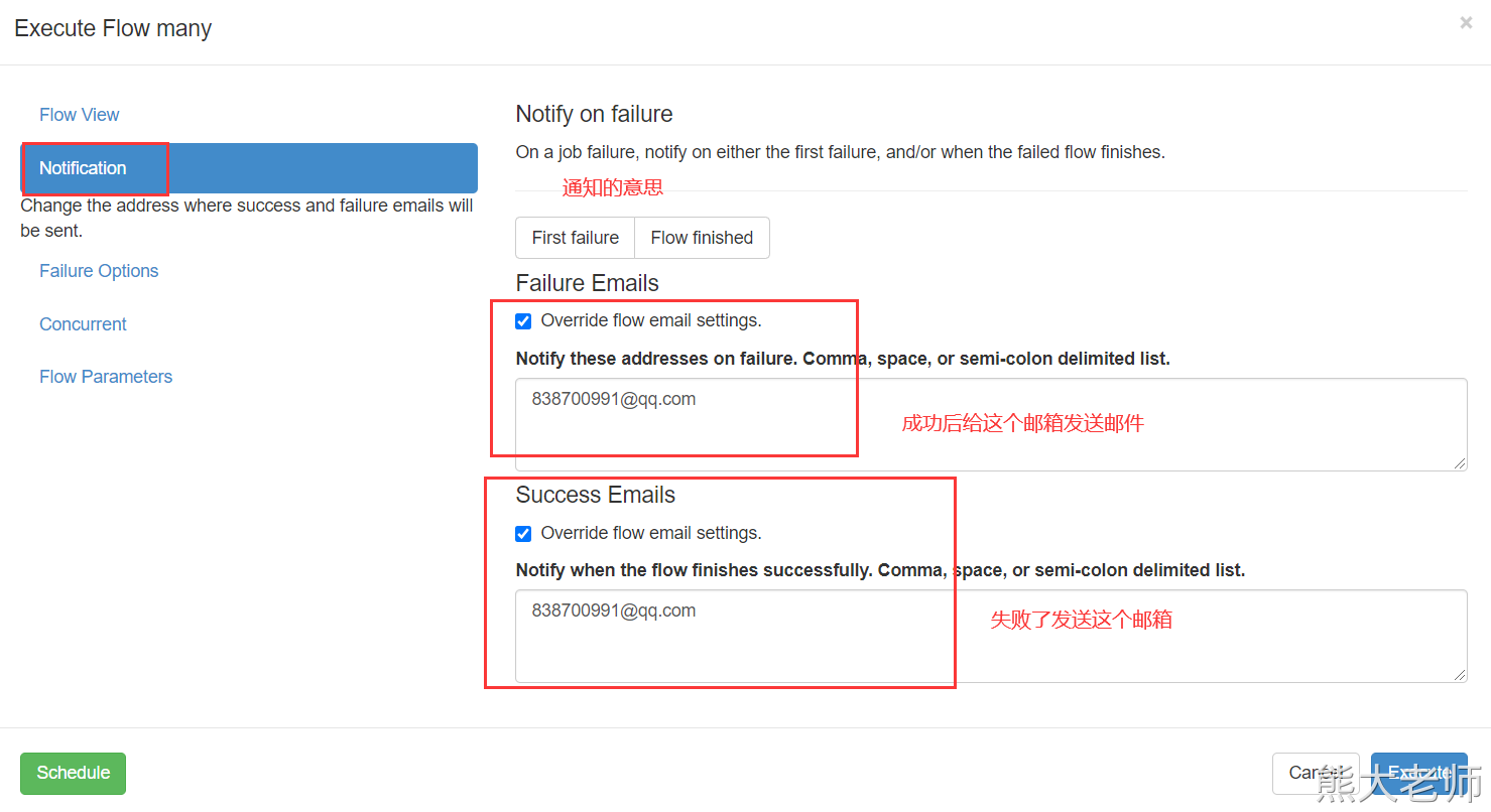 执行一个任务的时候,就可以设置要接受的邮箱地址了。