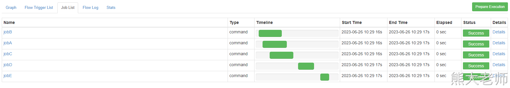 nodes: - name: jobE type: command config: command: echo "This is job E" # jobE depends on jobD dependsOn: - jobD - name: jobD type: command config: command: echo "This is job D" # jobD depends on jobA、jobB、jobC dependsOn: - jobA - jobB - jobC - name: jobA type: command config: command: echo "This is job A" - name: jobB type: command config: command: echo "This is job B" - name: jobC type: command config: command: echo "This is job C"